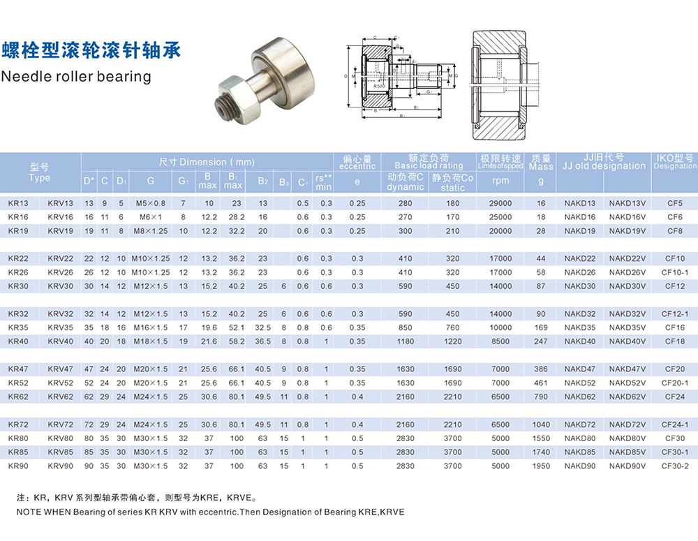 • 產(chǎn)品描述:螺栓型滾輪滾針軸承